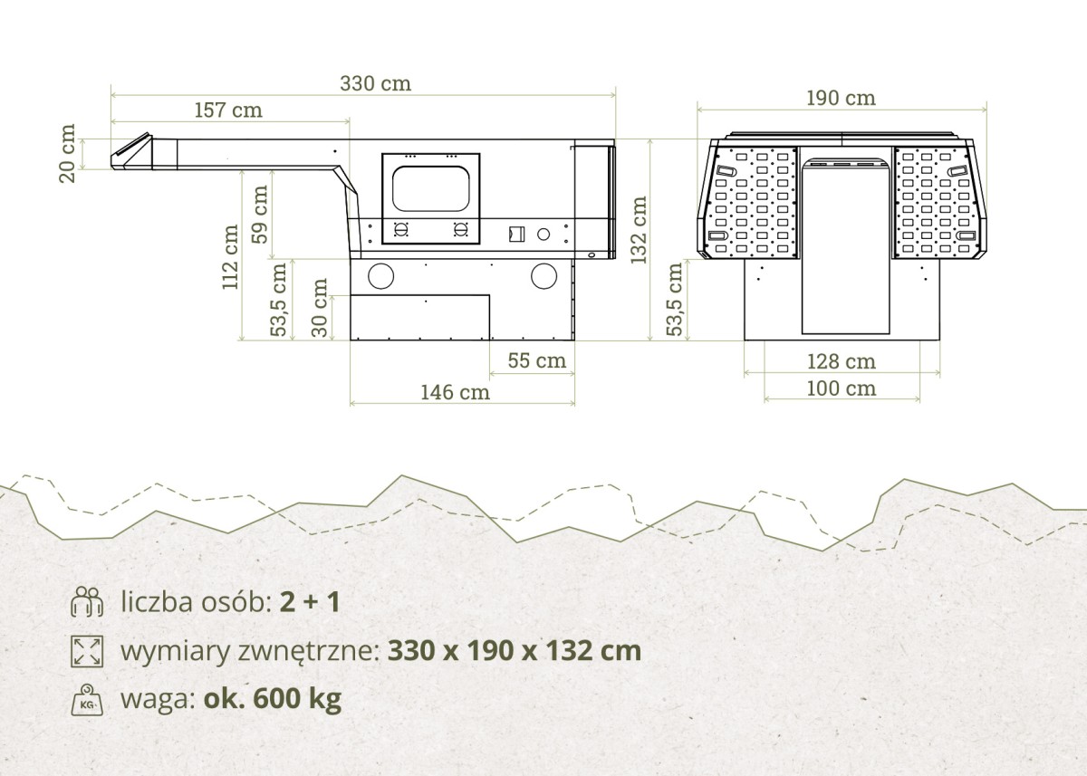 OFFLANDER ATAKAMA is a complete expedition-ready camper box designed for pickup trucks, combining true 4x4 capability with the comfort and independence of a full-featured camper. It is the perfect solution for overland travelers who want a ready-to-use, all-season living module without permanently modifying their vehicle.