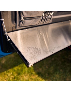 Drop‑Down Tailgate Table 104 with integrated MOLLE panel. Slim 40 mm folded profile, strong 20 kg...